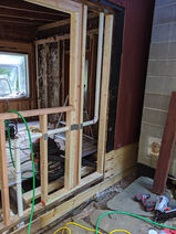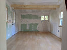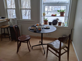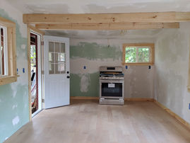 We got rid of a bedroom and opened a side of the house up into a space with light on 3 sides with new white oak floors. It is a 'work-at-home space' and a smaller comfortable living nook with pellet stove, bookshelves, and a new french door that opens to the back of home.